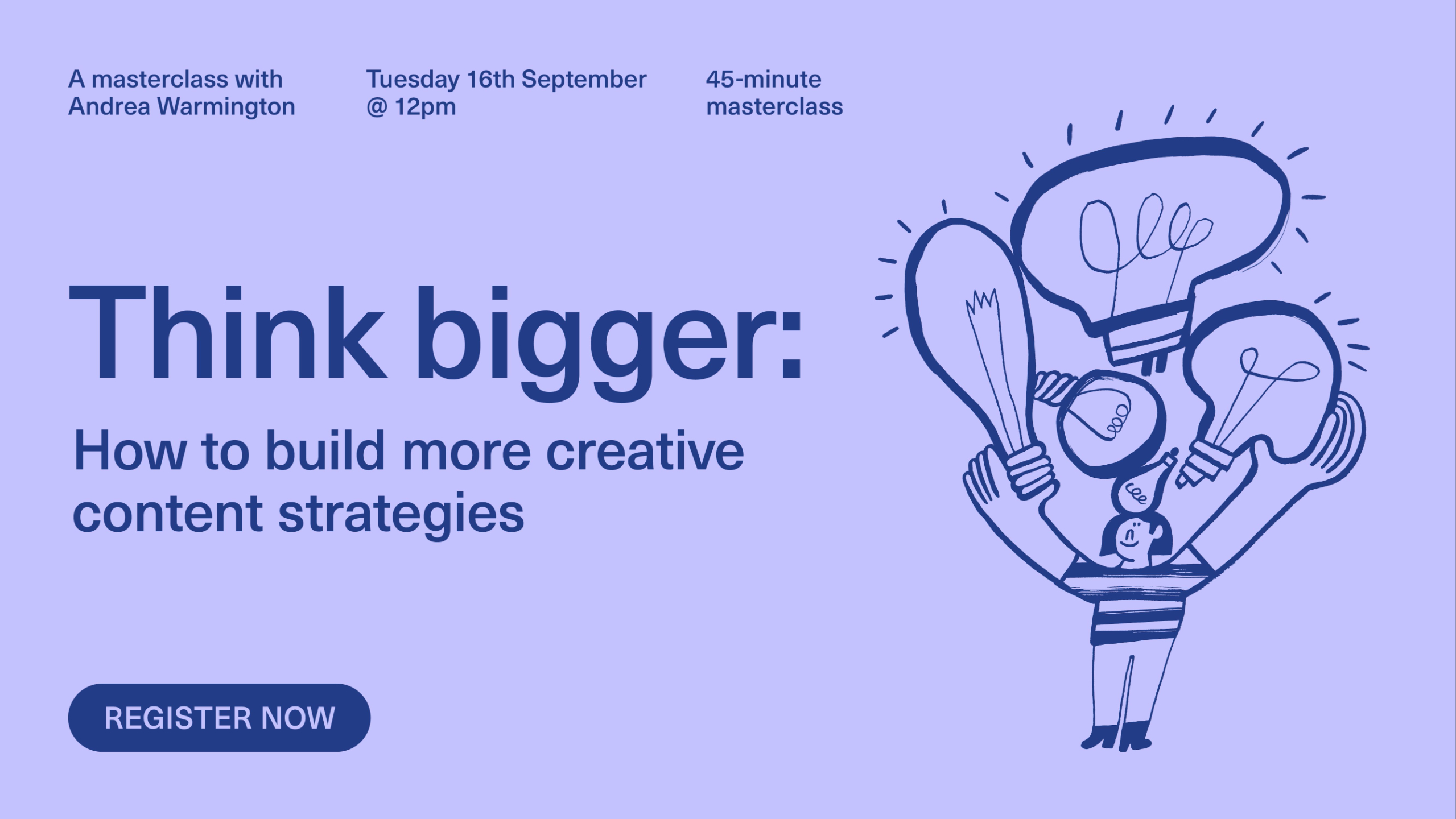 Join Andrea Warmington at 12pm on Tuesday 16th September for a 45-minute Masterclass, followed by a Q&A session.